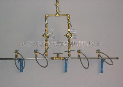 氣體匯流排指瓶裝高壓氣體,通過此設(shè)備減壓到一定的使用壓力,是集中供氣體的一種設(shè)備。氣體匯流排由左右兩根匯流主管道組成,中間有四只高壓閥門,分別控制左右兩組匯流管,每組有相稱數(shù)目的分閥,軟管及卡具連接氣瓶,中間裝有一塊高壓表,氣體匯流排用來檢測匯流管內(nèi)的壓力,高壓閥門上方分別有兩組減壓器,以便控制調(diào)節(jié)使用壓力及流量,減壓器上方分別有兩只低壓閥門,用來控制兩排氣體匯流排切換時的低壓氣體,匯流低壓主管道裝有一只低壓總閥門,用來控制低壓管道的氣體。